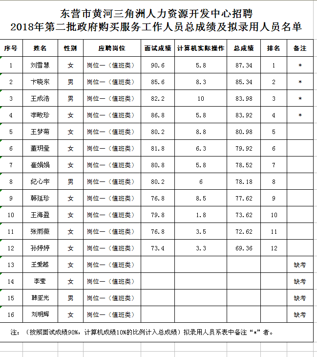 根據(jù)本次招聘活動(dòng)的安排,現(xiàn)將東營(yíng)市黃河三角洲人力資源開發(fā)中心招聘2018年第二批政府購買服務(wù)工作人員的總成績(jī)及擬錄用人員名單予以公布。望擬錄用人員按照統(tǒng)一規(guī)定和要求辦理相關(guān)手續(xù)。